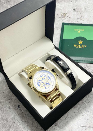 Подарочный набор для мужчины часы и браслет + коробка #23304817