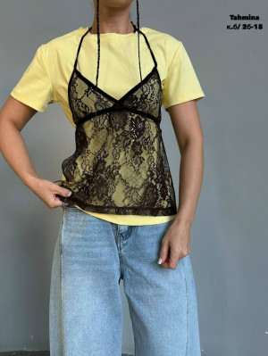 Футболка со съемным гипюром - это стильное решение для создания как повседневных, так и праздничных образов. Обеспечивает комфорт а кружева на детали оформления придают модели женственность и изысканность. В едином размере: 42/46
